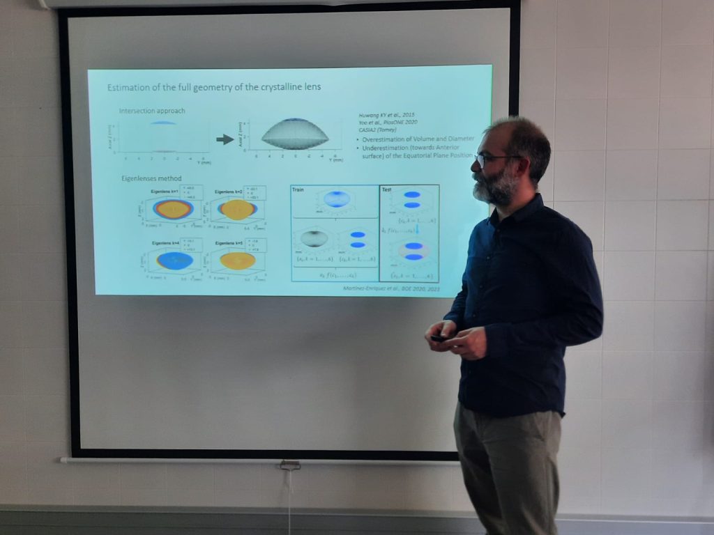 Today we welcomed Dr. Alberto de Castro, faculty member at the Instituto de Óptica (CSIC, Spanish National Research Council). We showed him around the lab, took the opportunity to acquire some images of his eyes, and he gave a very interesting talk entitled “Optical coherence tomography to study the optics of the human crystalline lens.” This was followed by an engaging discussion.